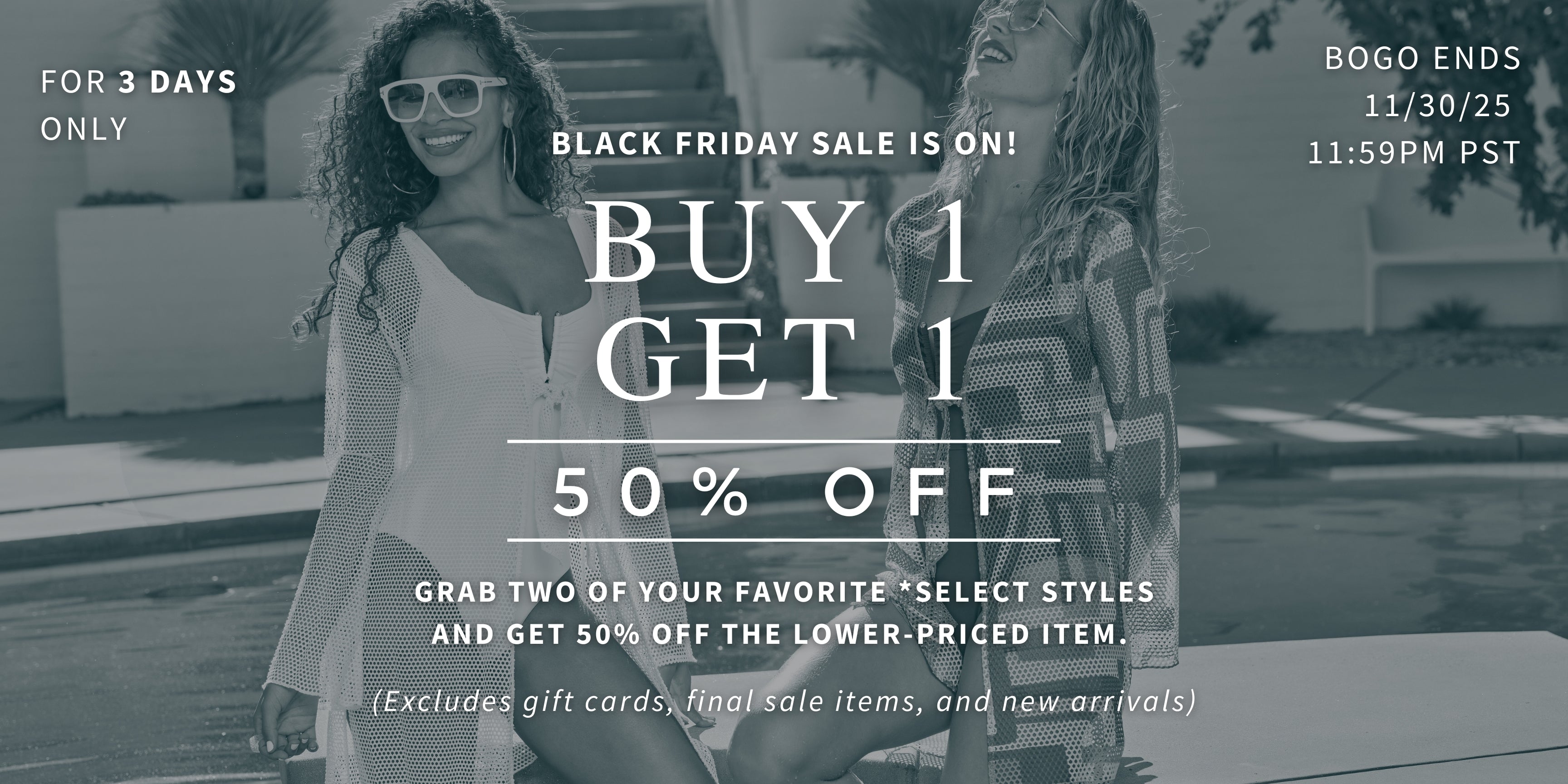 Have you been eyeing multiple styles? Now’s your chance to complete the look! Get 50% off your second piece during our first-ever Black Friday BOGO event. Valid Only Nov 28–30 only.